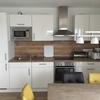 Kühlschrank, Geschirrspüler, Geschirreinrichtung, Elektroherd, Tiefkühlfach, Mikrowelle, Wasserkocher, Kaffeemaschine, Toaster, Besteck, Gläser
