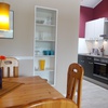 Kühlschrank, Geschirreinrichtung, Elektroherd, Tiefkühlfach, Wasserkocher, Kaffeemaschine, Toaster, Besteck, Gläser