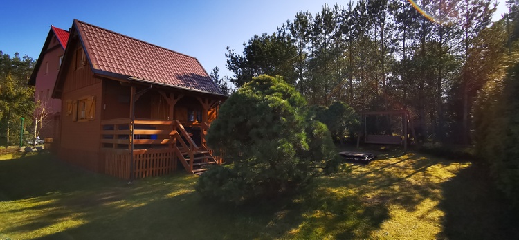 Domek po?o?ony jest na ogrodzonej dzia?ce. Na parterze znajduje si? salon z aneksem kuchennym i ?azienka. Na pi?trze znajduj? dwie sypialnie, w tym jedna zamkni?ta. Przy domku s? dwa tarasy: po?udniowy otwarty i zachodni zadaszonym. Na dzia?ce znajduj? si?: zagospodarowane miejsce do zabaw dla dzieci z hu?tawk? i piaskownic? oraz wydzielone miejsce na samochody. W domku mo?e jednocze?nie go?ci? do 8 osób. Zapraszamy bez zwierz?t.