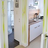 Kühlschrank, Geschirreinrichtung, Elektroherd, Tiefkühlfach, Mikrowelle, Wasserkocher, Kaffeemaschine, Toaster, Besteck, Gläser
