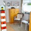 - Bücherregal (Leuchtturm) mit einer Auswahl an Urlaubslektüre und DVDs