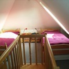 Im Dachgeschoss sind 2 weitere Schlafmöglichkeiten und 1 WC .