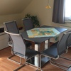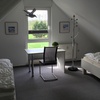 Die Wohnung bietet im 1. Obergeschoß ein Wohnzimmer (ca. 24 qm) mit gemütlichem Eßbereich, bequemer Schlafcouch und Küchenzeile, ein Schlafzimmer (ca. 16 qm) mit Doppelbett, Bad mit Fenster und Dusche sowie einen Flurbereich, ein großes zusätzliches Schlaf-/Kinderzimmer im gemütlichen Dachgeschoß mit zwei Einzelbetten sowie einen Süd-/West-Balkon. Mit einer Gesamtfläche von ca. 70 qm ist diese Ferienwohnung ideal für 2-5 Personen.