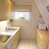 Kühlschrank, Geschirrspüler, Geschirreinrichtung, Elektroherd, Tiefkühlfach, Mikrowelle, Wasserkocher, Kaffeemaschine, Toaster, Eierkocher, Besteck, Gläser