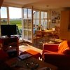 Ausstattung: 1 Schlafzimmer mit Doppelbett, 1 weiteres Schlafzimmer im DG mit Doppelbett und Einzelschlafsofa, Wohnzimmer mit offener Küche und Kamin. Spülmaschine, Waschmaschine, Kühlschrank mit Gefrierschrank, Herd mit Backofen, Wasserkocher, Toaster. Flur, Bad/Dusche/WC, (Fön) TV/Radio/CD, Internet WLAN/DSL, Kinderreisebett und Kinderhochstuhl. Großer Balkon mit Super Blick aufs Wasser. Gartenmöbel, Elektrogrill und 2 Liegen auf dem Balkon, Gartenhaus zum Abstellen von Fahrrädern etc., PKW-Stellplatz. Bis zu 5 Personen