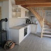 Es handelt sich um ein separates Haus auf dem Grundstück des Vermieters. Im Erdgeschoss befinden sich eine gute neue Küche, ein geräumiger Essplatz für 4 Personen neben einem behaglichen Kaminofen und ein kleines aber feines Bad. Aus der Wohnküche gelangt man über eine offene Treppe ins Obergeschoss. Von hier haben Sie einen herrlichen Ausblick. Im offenen oberen Bereich befinden sich 2 + 1 Schlafgelegenheiten, eine Sitzgruppe und ein Fernseher + blu-ray Player. Wir haben hier gezielt auf den Einbau von Trennwänden verzichtet und damit ein offenes und luftiges Raumgefühl geschaffen. Bettwäsche und Handtücher werden gestellt.