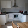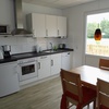 Einbauküche mit E-Herd/Ceranfeld, Dunst-Abzugshaube; Geschirrspüler, Kühlschrank mit Gefrierfach, Mikrowelle, Kaffeemaschine, Wasserkocher, Toaster, Radio.