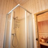 Vom Badezimmer mit Dusche gibt es einen direkten Zugang zur hauseigenen Sauna.