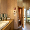 Zum Bad gehört neben der Badewanne auch eine ebenerdige Dusche und eine Sauna.