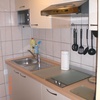Kühlschrank, Geschirreinrichtung, Elektroherd, Mikrowelle, Wasserkocher, Kaffeemaschine, Toaster, Besteck, Gläser
