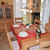 Im Erdgeschoss befinden sich ein gemütlicher Wohn- und Essbereich und eine moderne, offene Küche, die vollständig eingerichtet ist. Elektroherd mit Cerankochfeld und Umluftbackofen, Mikrowelle, Spülmaschine und Kühlschrank gehören ebenso zur Ausstattung wie z.B. ein separater Gefrierschrank, PAD- und Filterkaffee-Maschine, Mixer, Küchenwaage und alle sonstigen Küchen-Utensilien, die man für einen längeren Urlaub benötigt.