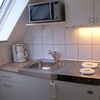Kühlschrank, Geschirreinrichtung, Tiefkühlfach, Mikrowelle, Wasserkocher, Kaffeemaschine, Toaster, Besteck, Gläser