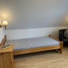 1 Kleines Schlafzimmer mit 1Einzelbett und Kleiderschrank.