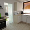 Küche: Esstisch, Backofen, Herd, Gefriercombi, Geschirrsp. Kaffeem, Wasserk.,Mixer, Mikrowelle.