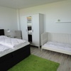 Schlafzimmer m. Boxspring- Doppelbett, Kinderbett 140x70, Kleiderschrank.