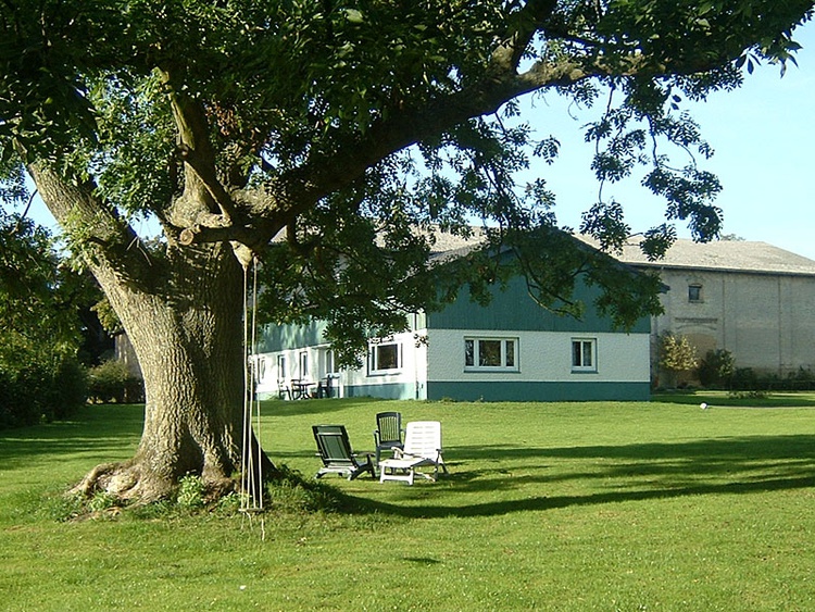 Ca. 4000 m² Rasenfläche umschließen das Ferienhaus. Das gesamte Grundstück ist nach Süden mit einer Schmuckhecke umgeben. Es ist eine sehr ruhige Lage mit Ausblick auf die Schlei in einiger Entfernung.