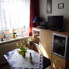 Kleine, aber gemütliche und ruhig gelegene Ferienwohnung mit ca. 27m² Wohnfläche, Ausgestattet ist das Wohnzimmer mit 2-Sitzer-Couch, Tisch und Sessel, Fernseher sowie Radio. Die integrierte Küchenzeile hat einen Geschirrspüler, Kühlschrank mit Gefrierfach, 2 Ceranfelder, Toaster?, Wasserkocher und Kaffeemaschine. Im Schlafzimmer befindet sich ein Doppelbett. Eine Aufbettung für Kinder bis ca. 5 Jahre wäre möglich. Das Bad ist mit einem WC und einer Dusche ausgestattet. Auf der nach Süden ausgerichteten Balkon-Terrasse laden Gartenmöbel zum Verweilen ein. Hier darf dann auch geraucht werden. Die max. Belegung der Ferienwohnung liegt bei 2 Erw. und 1 Kleinkind. Ein PKW-Stellplatz ist auf dem Grundstück vorhanden.