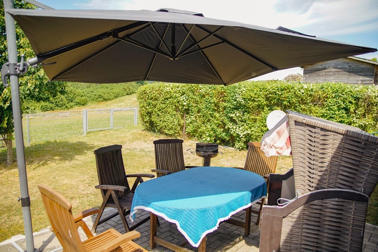 - große, private Terrasse mit Gartenmöbeln, Strandkorb und Grill