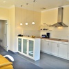 Sie verfügt über ein großzügiges Wohnzimmer mit Doppelausziehcouch. Im Wohnzimmer ist der offene, moderne Küchenbereich mit Theke integriert.
