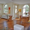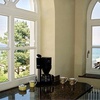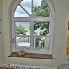 Stilvolles Interieur: Luxus und Komfort - Urlaub direkt am Strand, große Bogenfenster bis zum Boden im eleganten Wohnzimmer (40 qm) mit herrlicher Aussicht auf die Binzer Bucht und die weißen Klippen der Kreidefelsen.