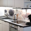 Kühlschrank, Geschirrspüler, Geschirreinrichtung, Elektroherd, Mikrowelle, Wasserkocher, Kaffeemaschine, Toaster, Besteck, Gläser