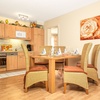 Der liebevoll eingerichtete Wohnbereich mit einer bequemen Sitzgarnitur grenzt direkt an den Essbereich und die offene Küche.