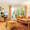 Der gemütlich und harmonisch eingerichtete Wohnbereich mit breiter Fensterfront zur Seeseite und schönem Balkon verwöhnt mit einem einmaligen Blick auf die Ostsee.