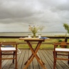 Einzeln stehendes Ferienhaus direkt am Boddenufer. Panoramablick aufs Wasser.