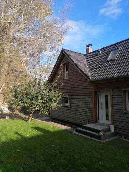 Massives Ferienhaus auf privatem Grundstück (ca. 1000 qm). Direkt am Boddenufer. Randobjekt einer alleinliegenden Siedlung. Unweit der Vineta-Stadt Barth (17km bis zum Darßer Ostseestrand). Nichtraucherdomizil. Geeignet für drei (maximal vier) Personen.