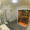 Das große Badezimmer mit Whirlpoolwanne, begehbarer Dusche und Infrarotkabine lässt auch bei schlechtem Wetter den Urlaub zum Erlebnis werden. Im übrigen ist Infarot nicht nur etwas für uns Menschen sondern auch für Hunde ist es geeignet. Für die schlechten Tage ist auch eine Spielkonsole vorhanden, ein paar Spiele und Bücher.