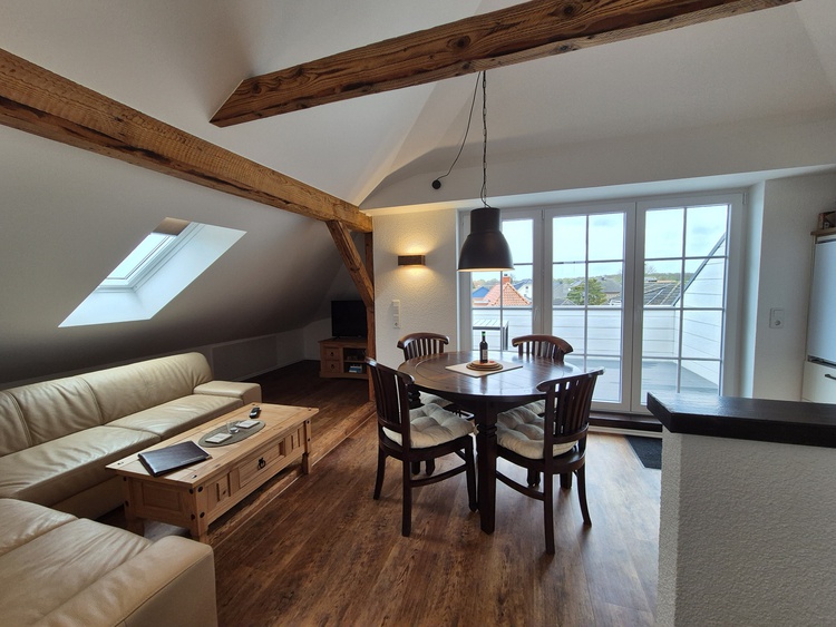 Die Wohnung präsentiert sich mit einer voll ausgestatteten Küchenzeile, die neben einem Geschirrspüler auch eine Kaffeemaschine und einen Wasserkocher umfasst, ideal für Selbstversorger. Ein gemütlicher Essbereich lädt zu gemeinsamen Mahlzeiten ein. Entspannen Sie im stilvollen Wohnbereich, mit Fernseher oder erholen Sie sich in den liebevoll eingerichteten Schlafzimmern, die Ruhe und Komfort versprechen.