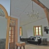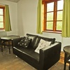 Die Ferienwohnung ist mit schönen antiken Möbeln ausgestattet. Zur Westseite befinden sich ein großer Küchen- und Wohnbereich, in der Gebäudemitte zwei Schlafzimmer und das Bad. Außen herum verläuft an der Süd- und Westseite ein breiter Laubengang.