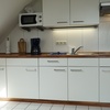 Kühlschrank, Geschirreinrichtung, Elektroherd, Tiefkühlfach, Mikrowelle, Wasserkocher, Kaffeemaschine, Toaster, Eierkocher, Besteck, Gläser