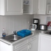 Kühlschrank, Geschirrspüler, Geschirreinrichtung, Elektroherd, Tiefkühlfach, Mikrowelle, Wasserkocher, Kaffeemaschine, Toaster, Eierkocher, Besteck, Gläser