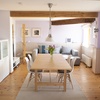Der große Wohraum ist in einen Kückenbereich, einen Eßbereich, einen Kaminbereich mit Sesselecke, sowie einen großzügigen Sofabereich mit TV gegliedert.