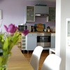 Kühlschrank, Geschirrspüler, Geschirreinrichtung, Elektroherd, Tiefkühlfach, Mikrowelle, Wasserkocher, Kaffeemaschine, Toaster, Eierkocher, Besteck, Gläser
