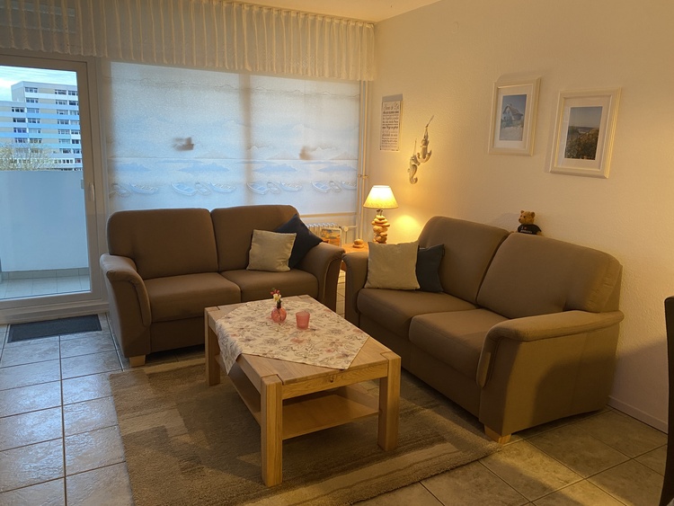 Unsere Nichtraucherwohnung (45qm) ist ausgestattet für maximal vier Personen (2 Erw./ 1 Ki.). Sie hat eine komplett eingerichtete Küche mit Cerankochfeld, Kühlschrank mit Gefrierfach, Kaffeemaschine, Senseo, Wasserkocher, Mixer und Toaster.