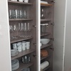 Kühlschrank, Geschirrspüler, Geschirreinrichtung, Elektroherd, Tiefkühlfach, Wasserkocher, Kaffeemaschine, Toaster, Besteck, Gläser