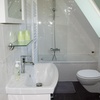 Im Bad und den Schlafzimmern sind Dachschrägen.