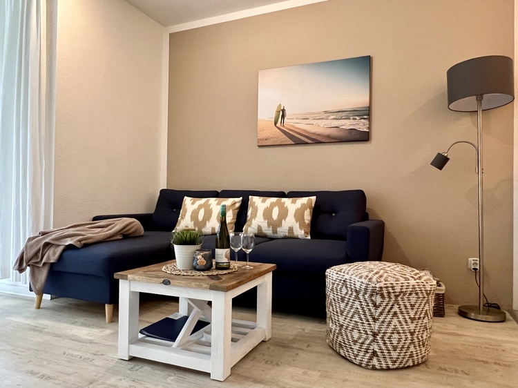 Unsere modern eingerichtete Ferienwohnung ist nur ca. 200m vom Strand entfernt. Sie liegt im Erdgeschoss einer ruhigen, gepflegten Wohnanlage (Haus Seepark). Die 40m² Wohnfläche teilen sich auf in einen Wohn-/Essbereich mit sich direkt anschließender Küche, ein Schlafzimmer, Bad, Flur sowie einen kleinen Balkon - optimal für max. 2 Personen.
