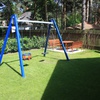 Kinderspielplatz mit Doppelschaukel und Karussell;