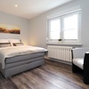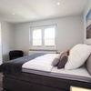 - Wohnbereich mit Flachbildfernseher und bequemer Couch und angrenzendem Schlafbereich mit einem gemütlichen Doppelbett (180 x 200cm / durchgehende Matratze)