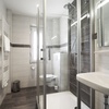 - Badezimmer vom Flur begehbar mit Dusche, WC und einen Föhn.