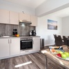 Über die kleine Zugangstreppe erreichen Sie die Wohnung 3. Diese Wohnung hat zwei Schlafzimmer für vier Personen. Das 1. Schlafzimmer grenzt an den Wohnbereich. Das 2. Schlafzimmer erreichen Sie über den Wohnungsflur. Die Wohnung hat folgende Ausstattung: