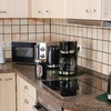 Kühlschrank, Geschirreinrichtung, Elektroherd, Tiefkühlfach, Mikrowelle, Wasserkocher, Kaffeemaschine, Toaster, Eierkocher, Besteck, Gläser