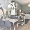 Kühlschrank, Geschirrspüler, Geschirreinrichtung, Elektroherd, Tiefkühlfach, Mikrowelle, Wasserkocher, Kaffeemaschine, Toaster, Besteck, Gläser