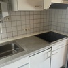 Kühlschrank, Elektroherd, Tiefkühlfach, Mikrowelle, Wasserkocher, Kaffeemaschine, Toaster, Besteck, Gläser