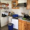 Gasherd, Kühlschrank, Geschirreinrichtung, Tiefkühlfach, Mikrowelle, Wasserkocher, Kaffeemaschine, Toaster, Besteck, Gläser