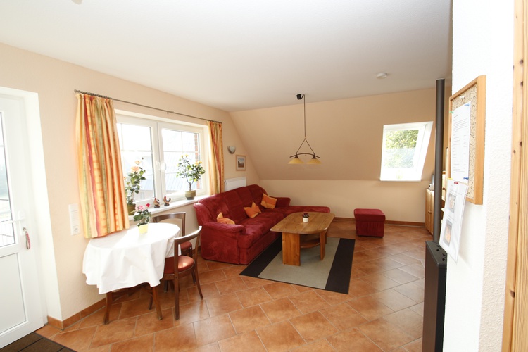 Dies ist die neuere der beiden Wohnungen (2010). Vom Deutschen Tourismusverband (DTV) mit 4 Sternen prämiert! Genießen Sie einen Rundumblick auf unsere Nachbarschaft oder ein kleines Wäldchen, umgeben von weiten Feldern. Zu dieser Wohnung gehört auch eine Dachterasse vor der Eingangstür.