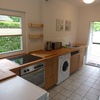 Kühlschrank, Geschirrspüler, Geschirreinrichtung, Elektroherd, Tiefkühlfach, Mikrowelle, Wasserkocher, Kaffeemaschine, Toaster, Besteck, Gläser
